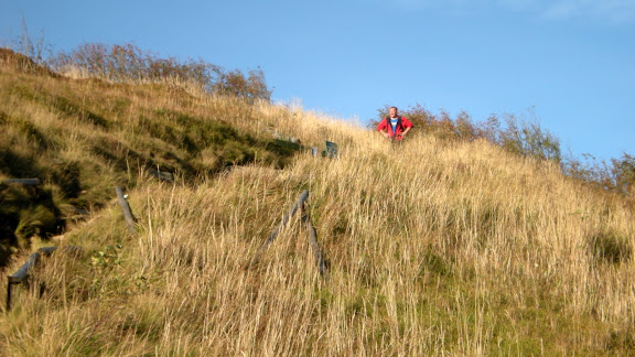 Schody, schody, schody... Kto wybudował to ustrojstwo??? Po równej godzinie wychodzimy ponad granicę lasu. Rest. Kris pyta: - "Masz otwieracz?" - "A po kiego Ci?" Po chwili już wiem po kiego. Metodą surviwalowo-menelską kapsel z piwa żegna się z butelką pod naporem mojego kijka