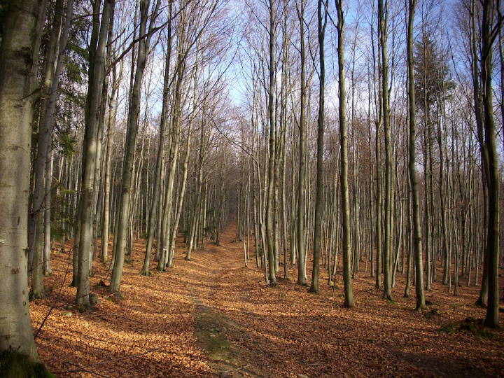 Następnie nadeszła pora na ostatnie podejście. Poprzez bukowy las dotarłem w rejony Łysiny. Po stronie południowej piękna pogoda.