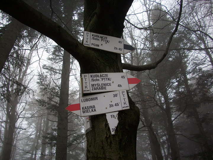 Z dniem 20 listopada pomysł, który od pewnego czasu kiełkował w mojej głowie, został wykonany w 100%. Wczesnym rankiem wyruszyłem żółtym szlakiem z Lubnia na Łysinę. Trochę ciemno było, jak to w listopadzie, a w ciemnościach czyhały pułapki na nieświadomego podróżnika.
